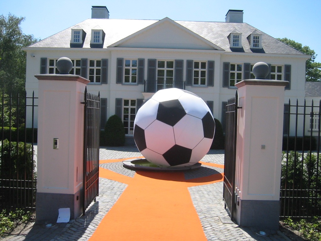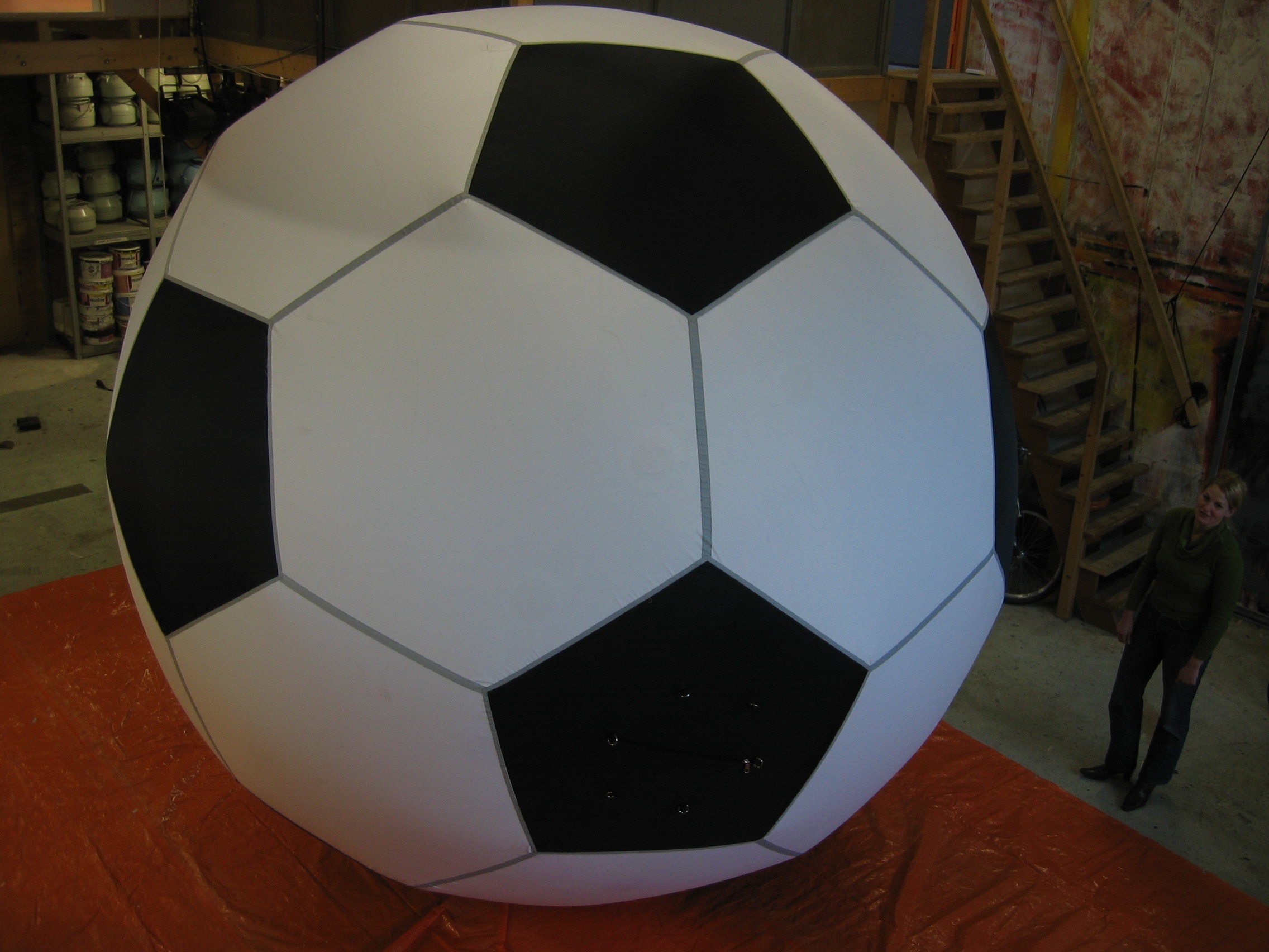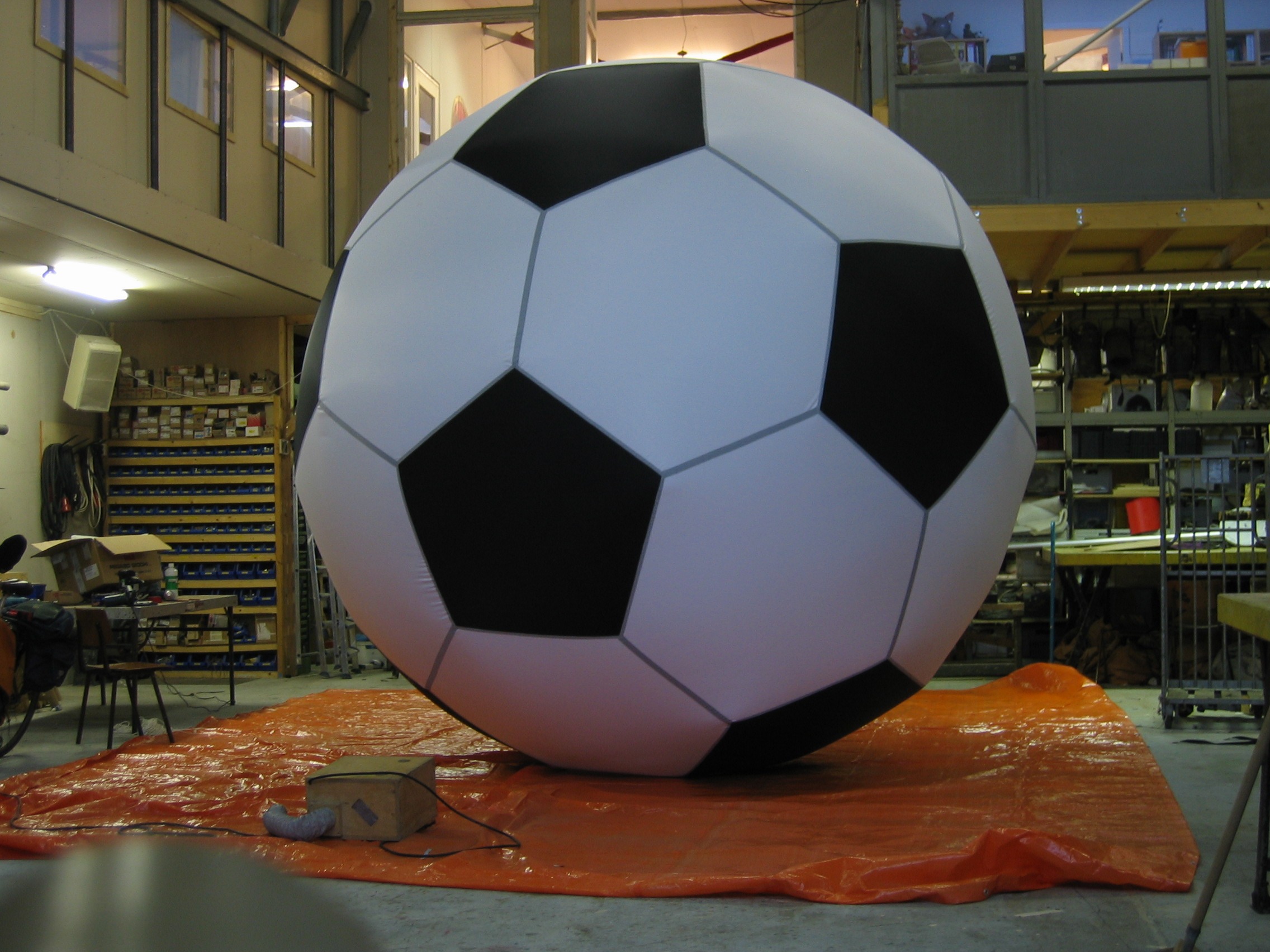 4m inflatable football in Airworks Rentals workshop