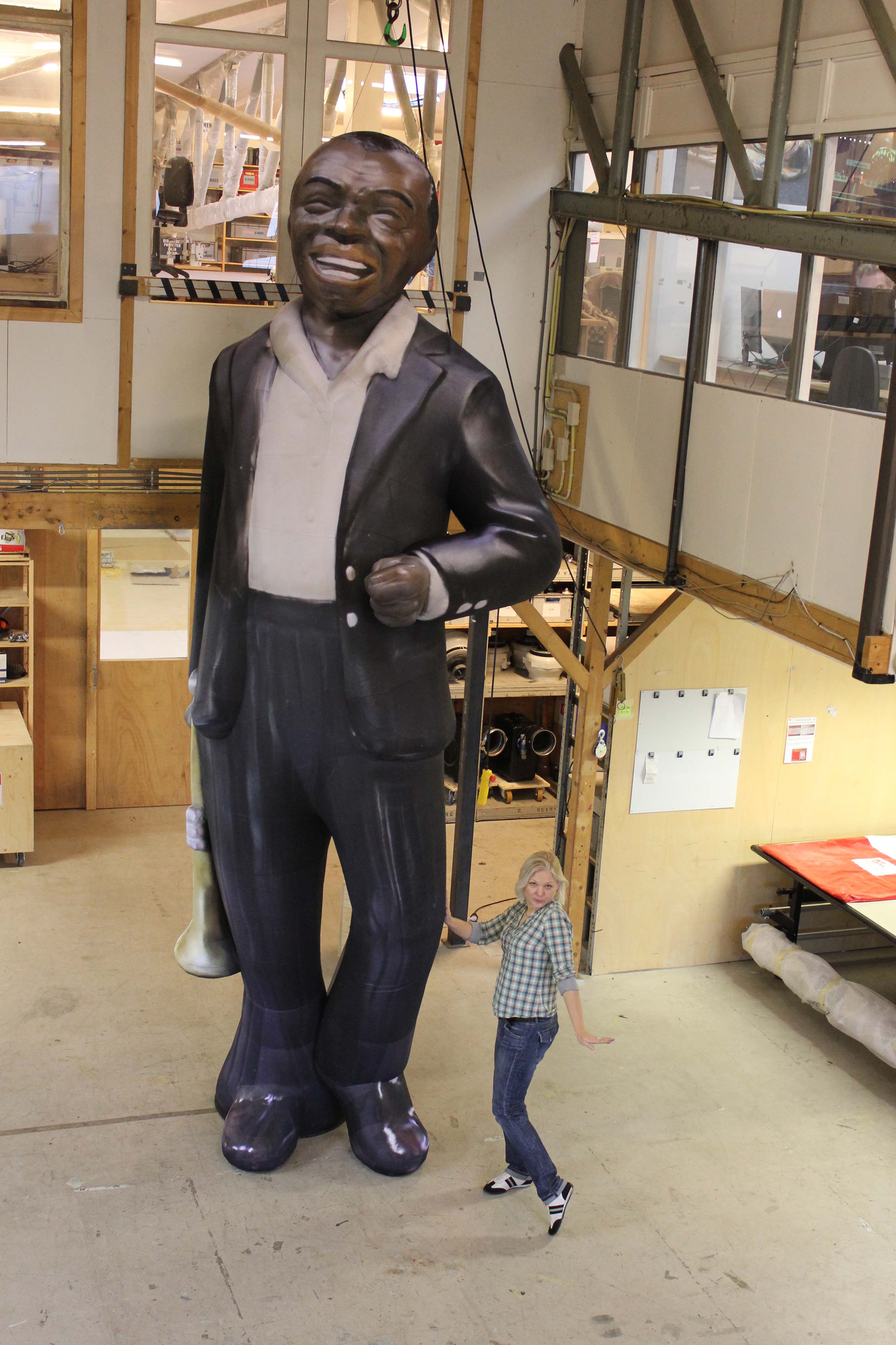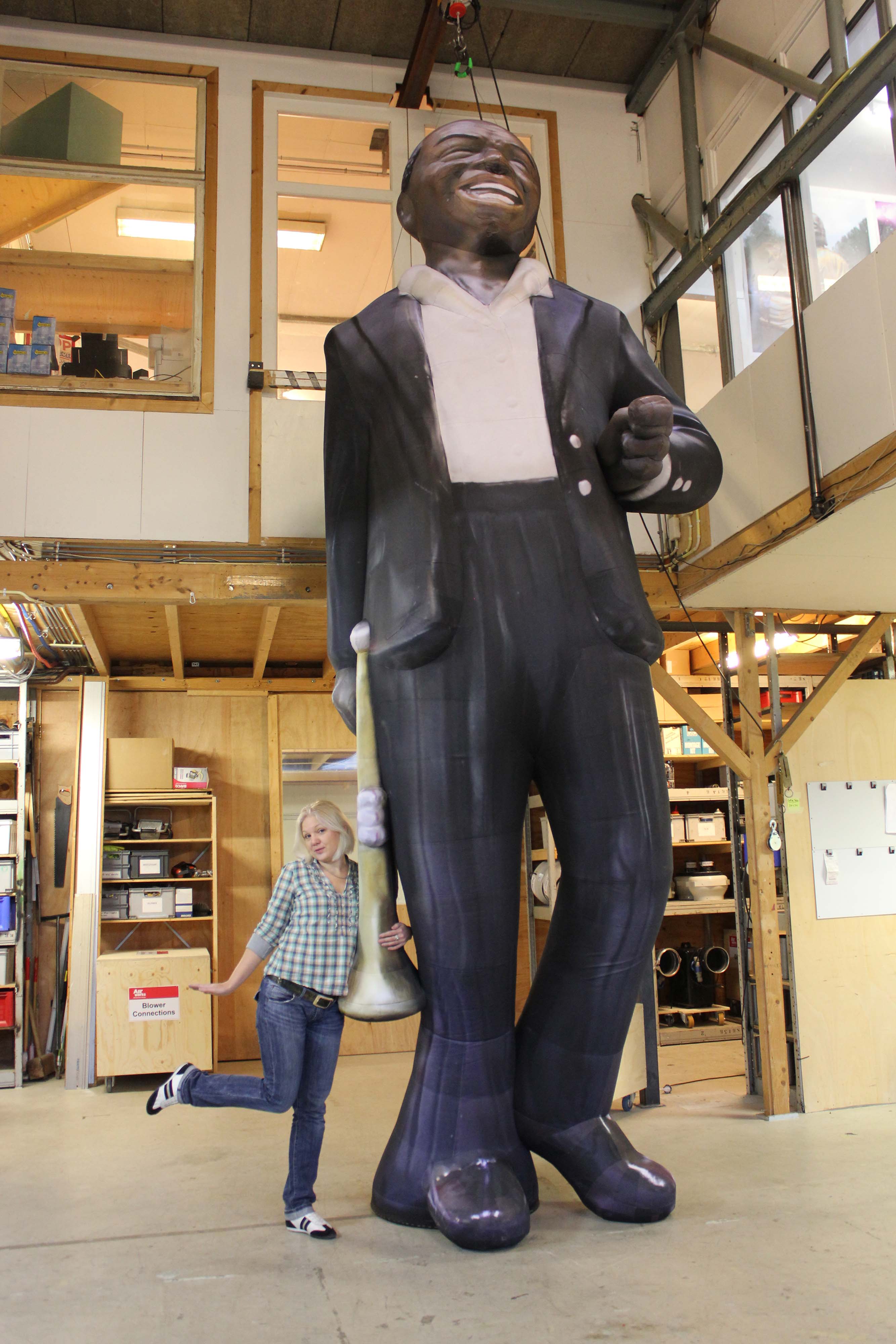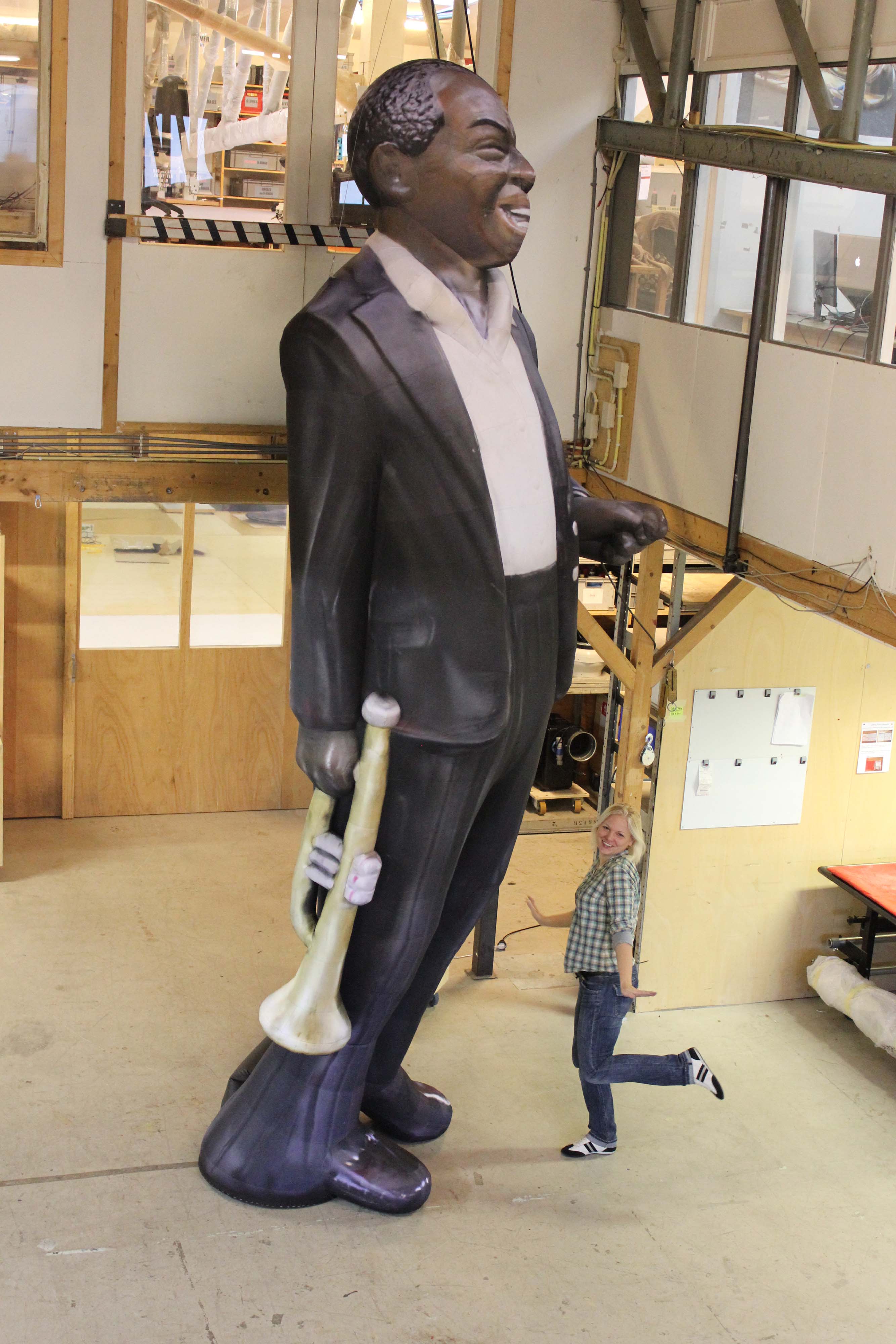 5m inflatable Louis Armstrong with trumpet in studio