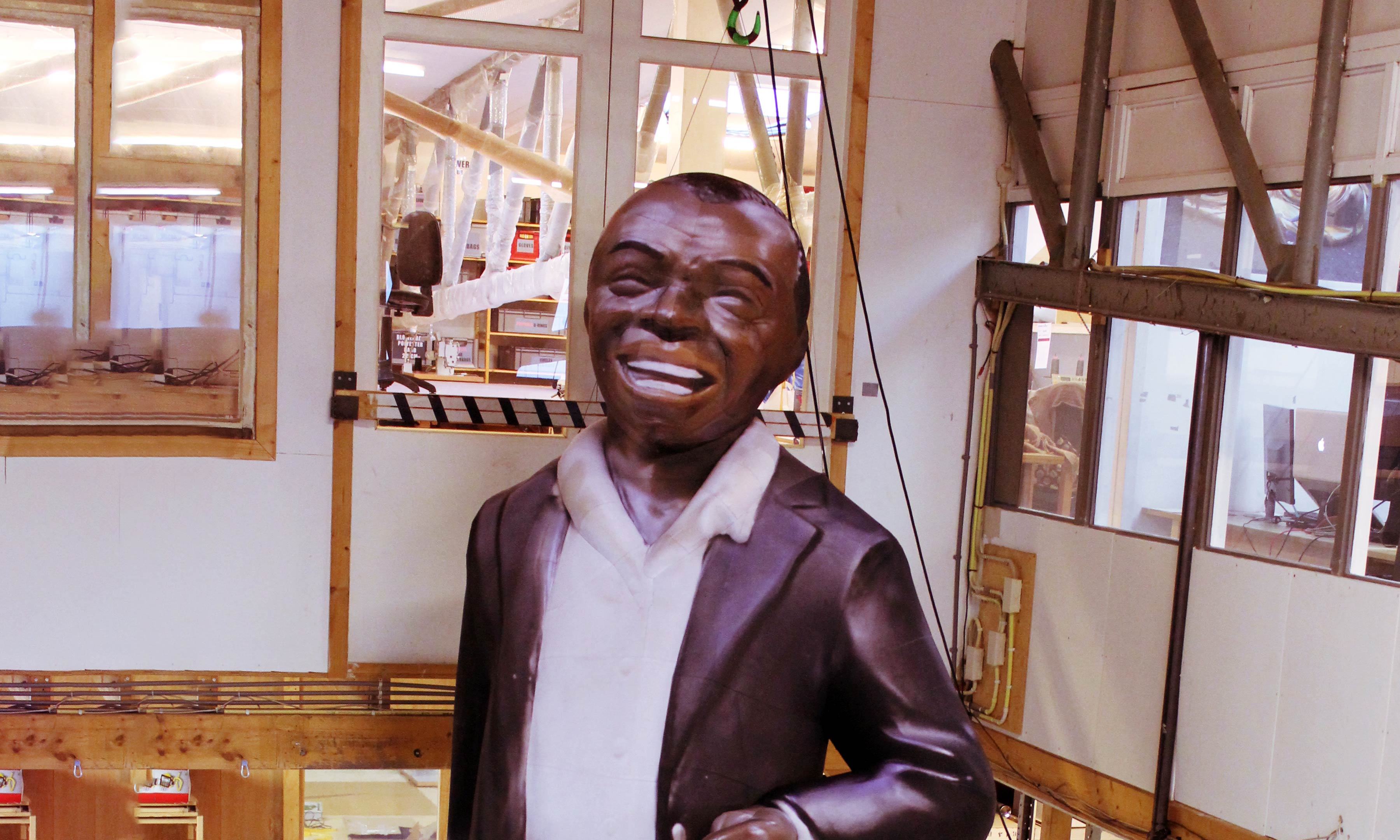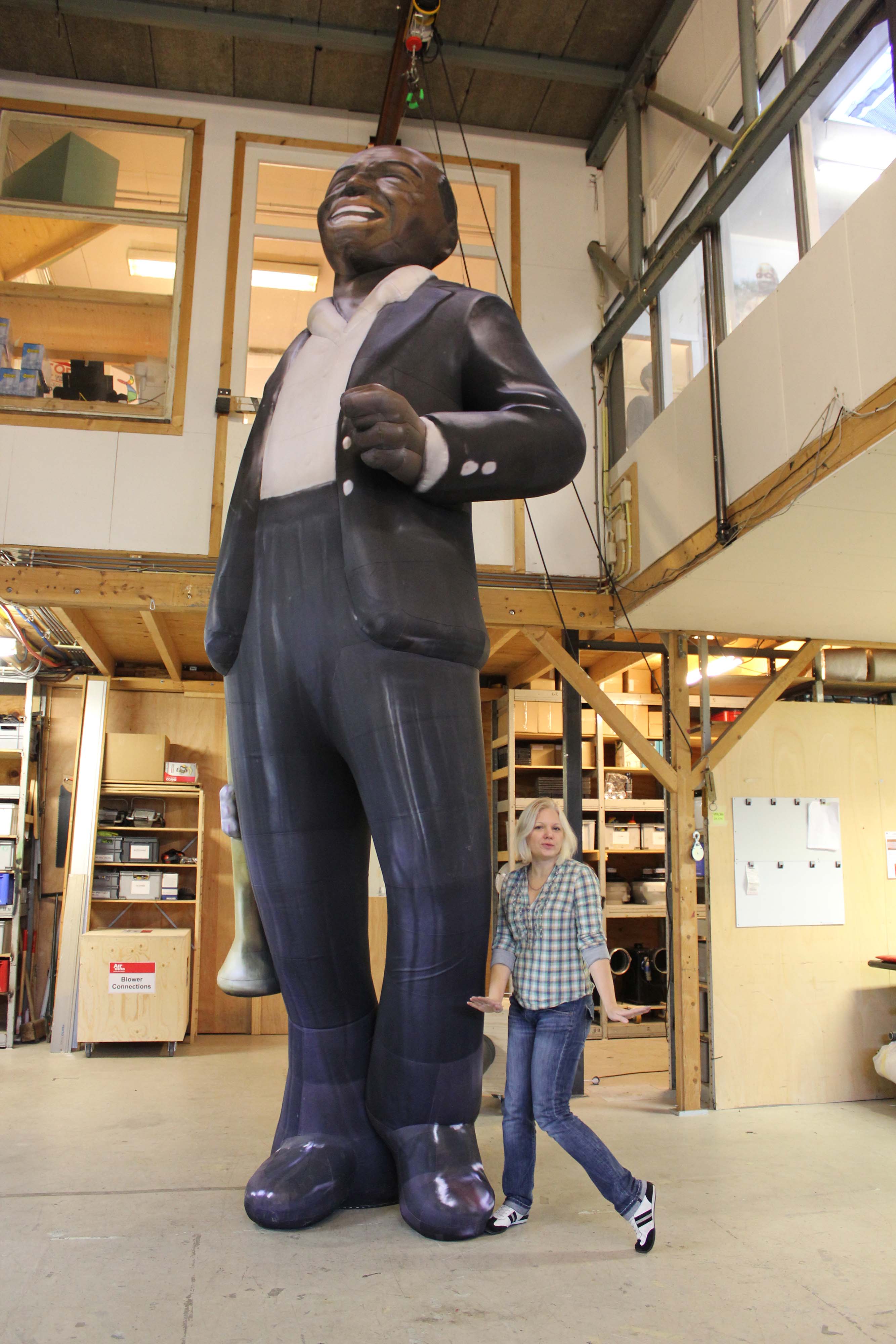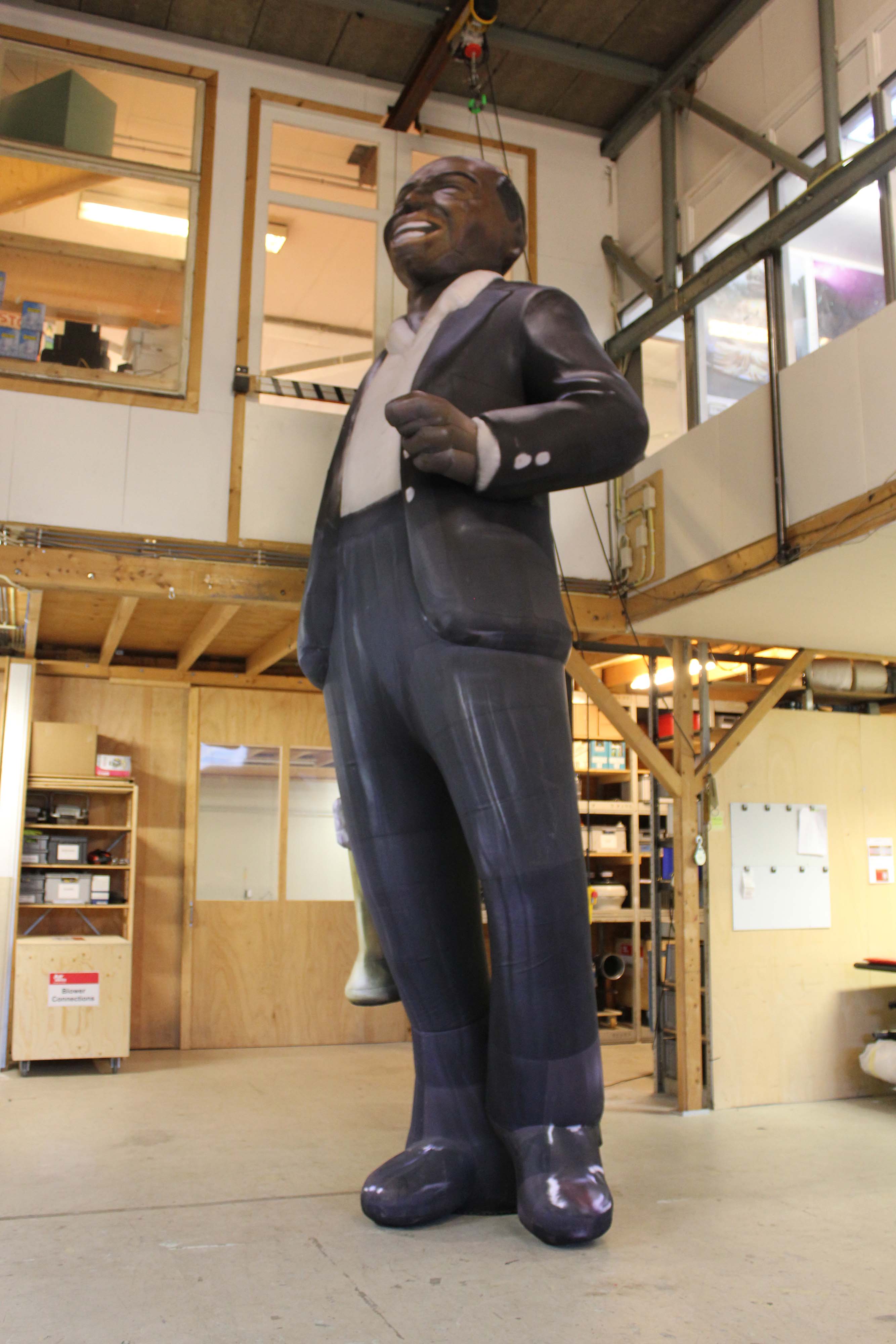 5m inflatable Louis Armstrong with trumpet in studio