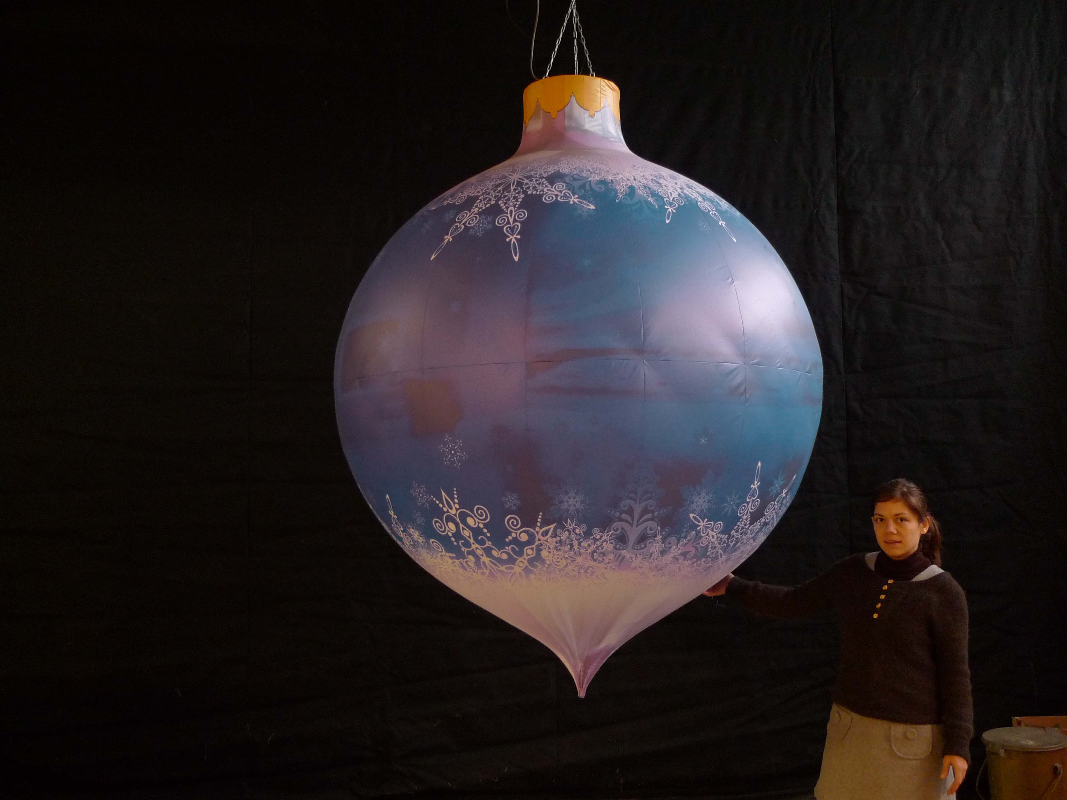 Hang up our three giant Christmas baubles to add impact to a festive party. Especially beautiful when lit from within.