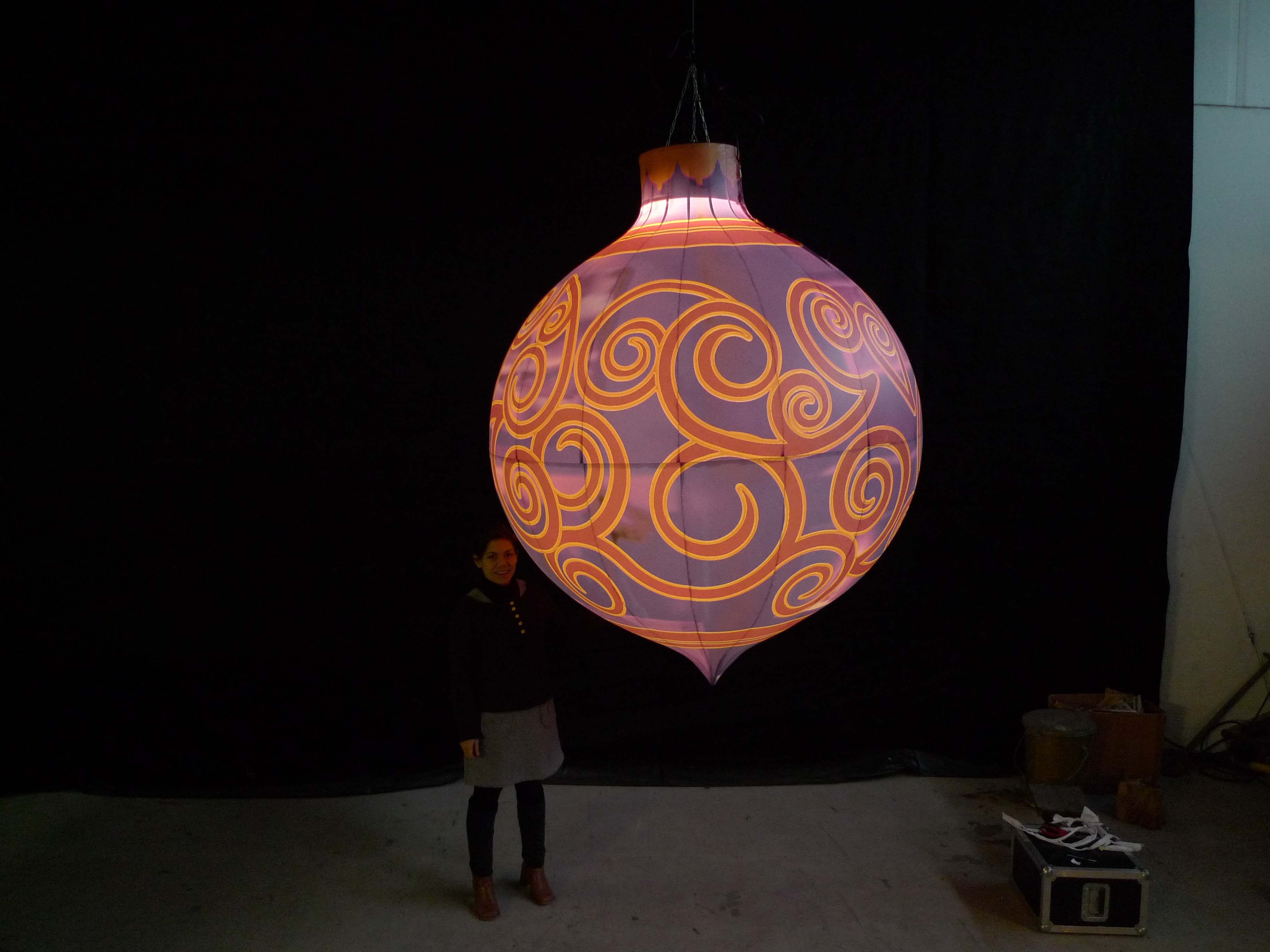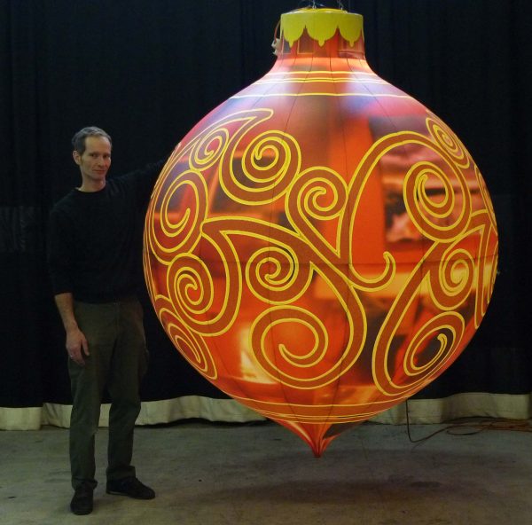 2m inflatable Christmas bauble with red and silver swirl